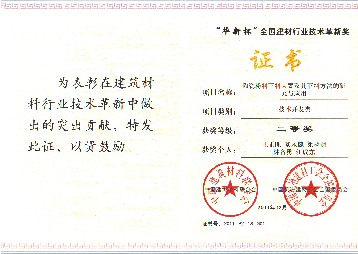 名称:年度优秀产品(瓷砖类)